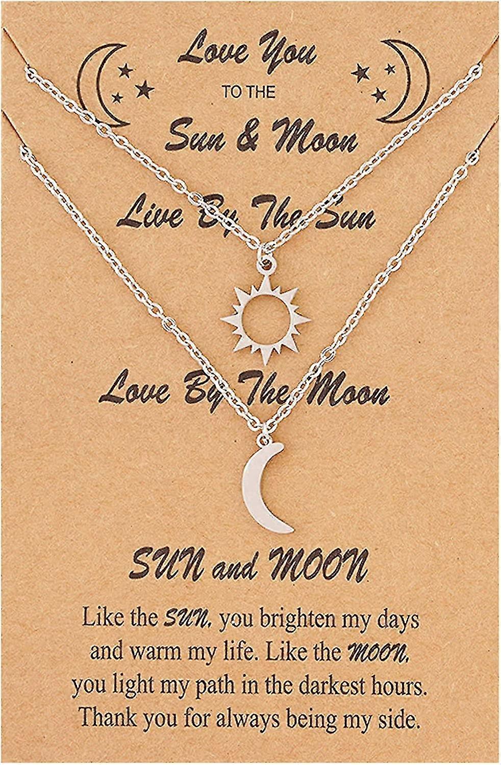 Stainless Steel Charm Sun And Moon Best Friend Couple Necklace Distance Matching Friendship lry Gifts For Women Men Teen - -