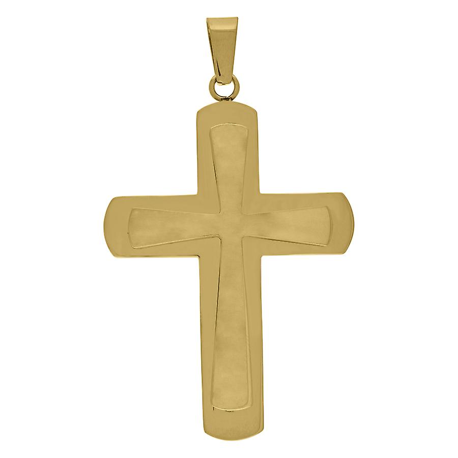 Stainless Steel Yellow tone Mens Two Layer Cross Religious Charm Pendant Necklace for Men