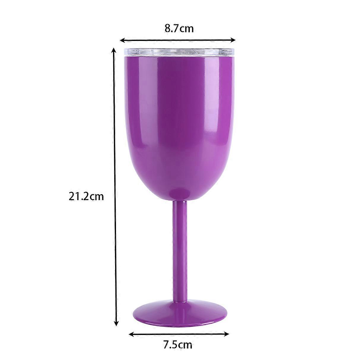 Stainless Steel Cocktail Tumbler Vacuum Insulated Wine Cup Juice Drinks Goblet With Lid Purple