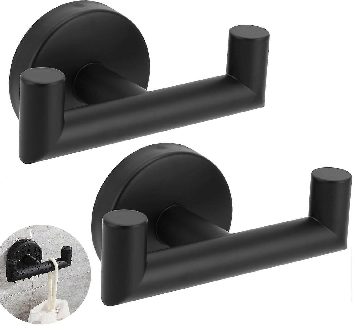 Stainless Steel Single Double Hook Bathroom Towel Coat Rack Wall Mounted for Bathroom Kitchen Matte Black