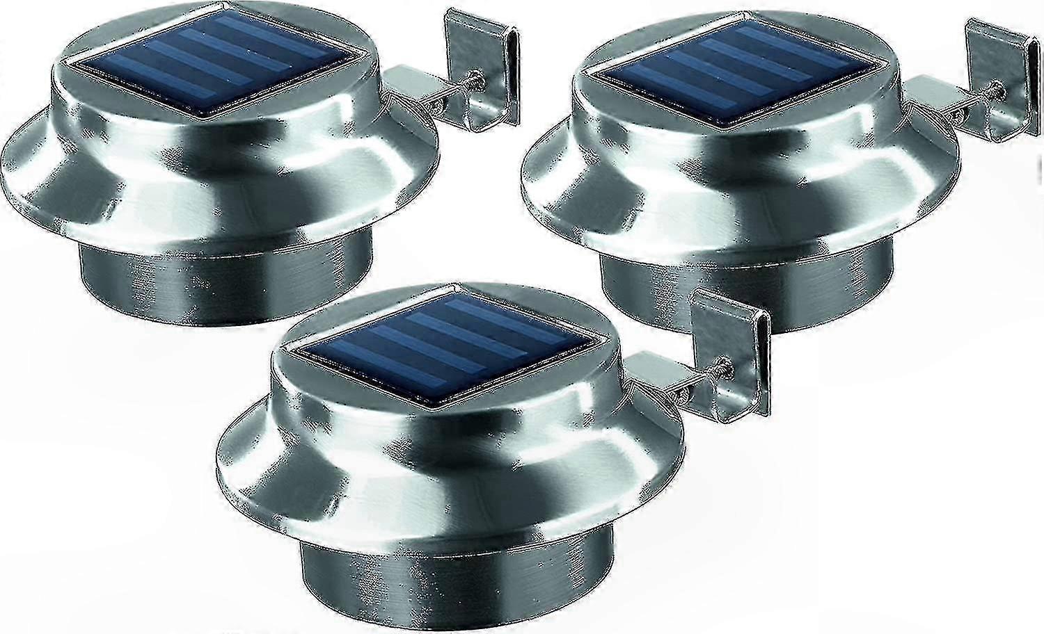 Stainless Steel Solar Gutter Lights - 3-Pack Silver Wireless Outdoor Lighting Fixtures