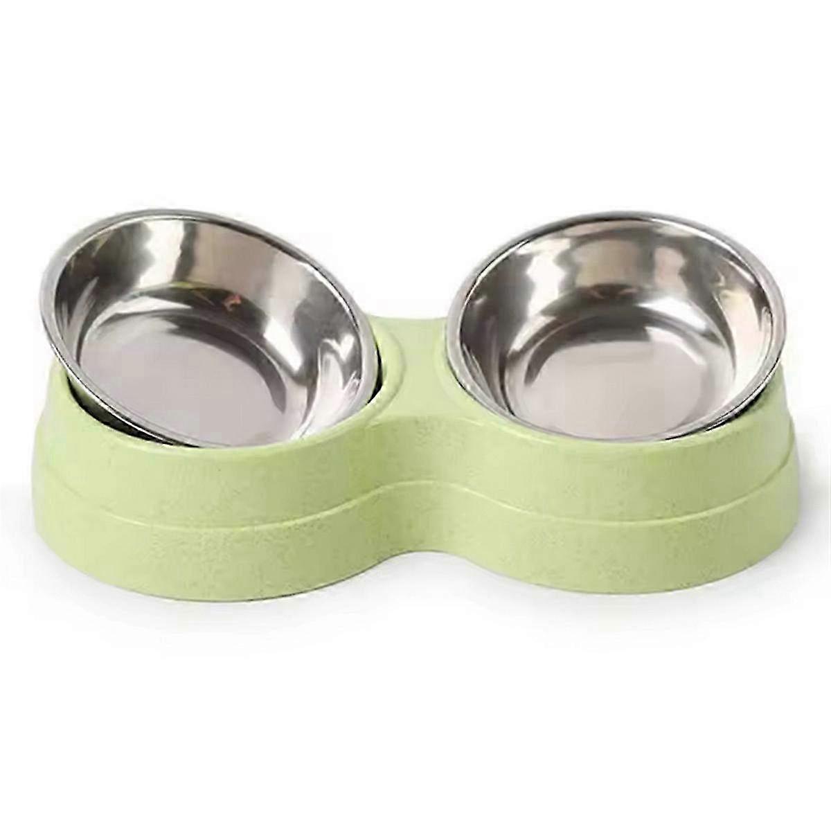 Stainless Steel Double Pet Bowls Water Feeder & Drinking Dish - Green Cat & Dog Food Station for Pets