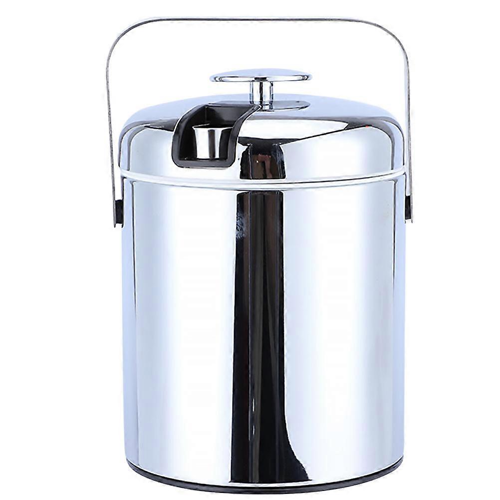 Stainless Steel Chiller Bucket Insulated Ice Buckets Portable Handle 1.3L Silver Perfect for Hotel Cafe 1Pack