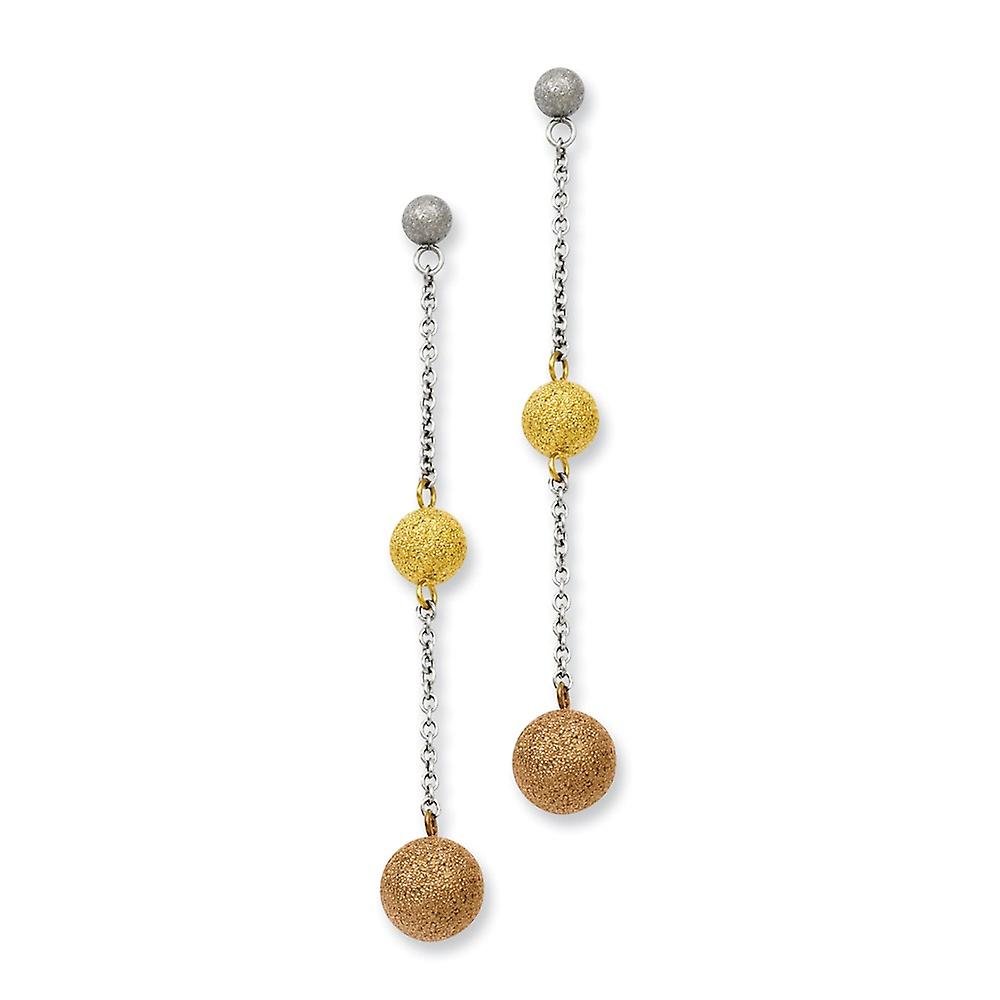 Stainless Steel Tri color Laser cut Plated Sparkle-Cut Post Long Drop Dangle Earrings 60x7mm Wide-Dangle Earring for Wom