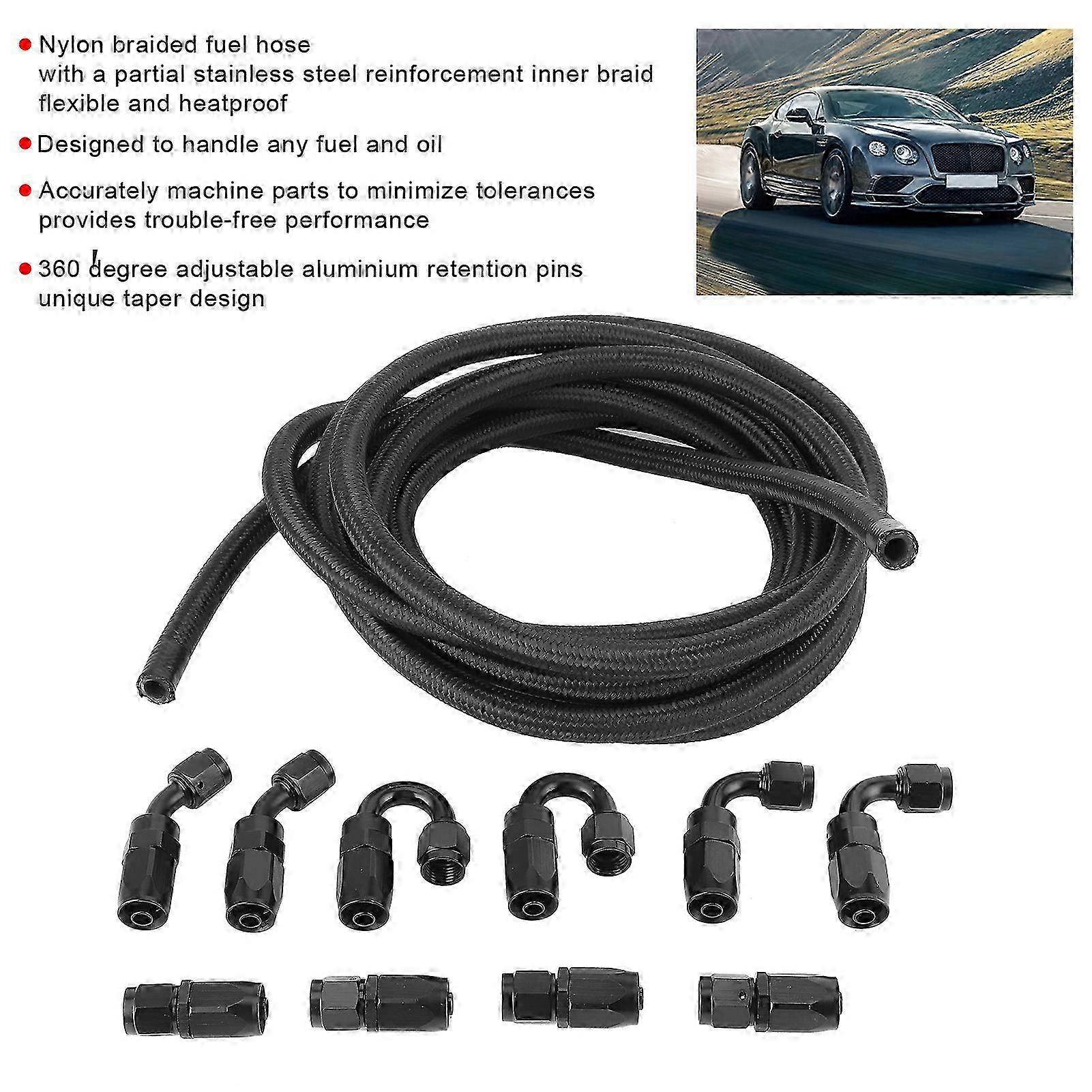 Stainless Steel Nylon Braided Oil Fuel Hose - 5m AN66AN Fitting with 45 90 180 Degree Adapter