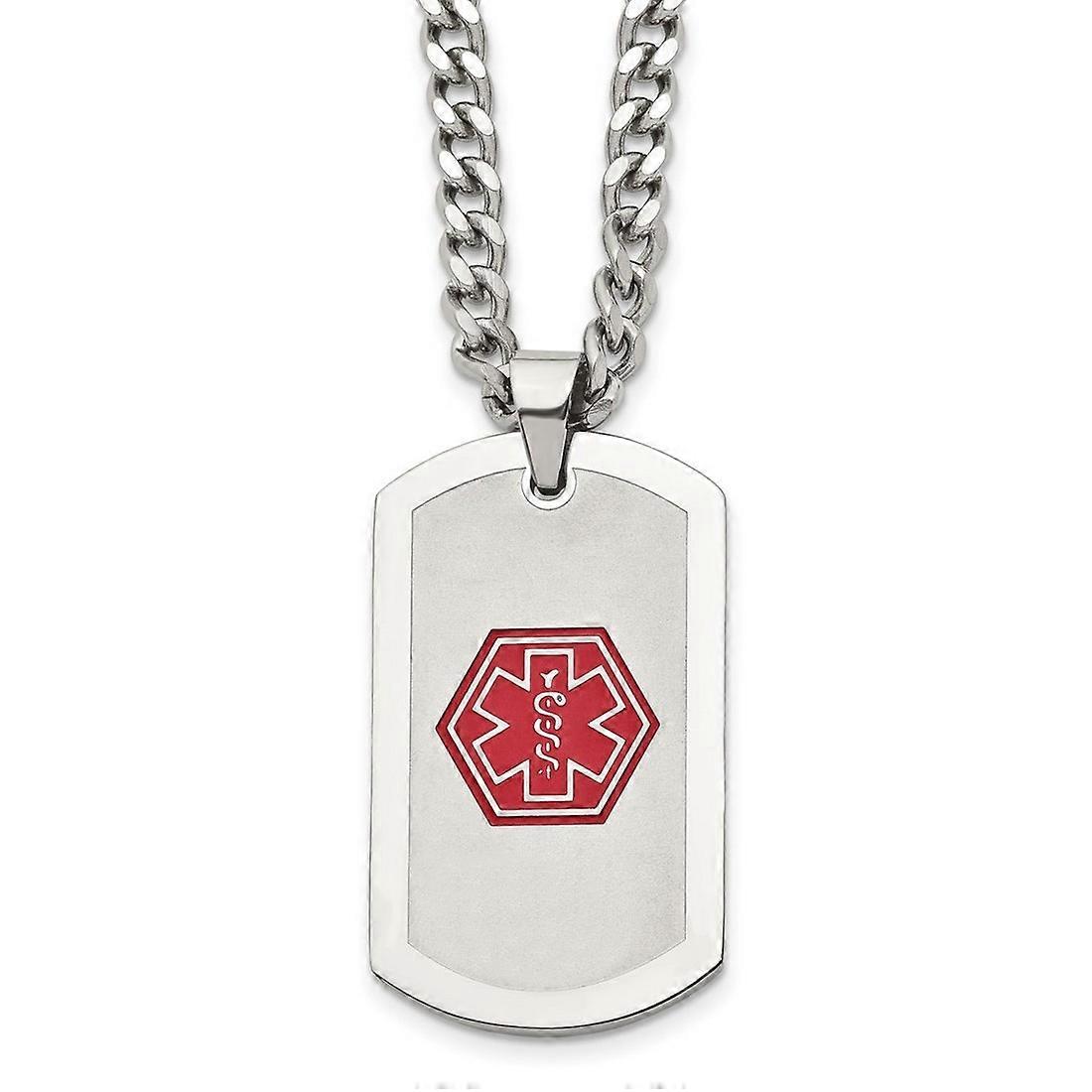 Stainless Steel Fancy Lobster Closure Brushed and Polished Animal Pet Dog Tag Medical Pendant 30inch Necklace 30 Inch 26