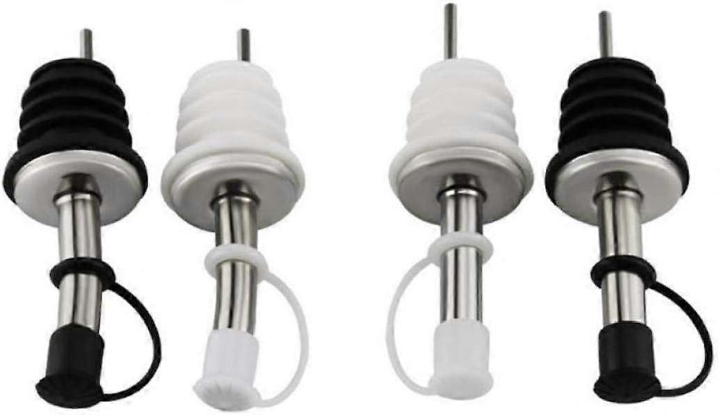 Stainless Steel Bottle Pourers Tapered Spout Liquor Pourers with Rubber Dust Caps with Wine Pour Liquor Dust Caps Covers (white+black 4pcs)