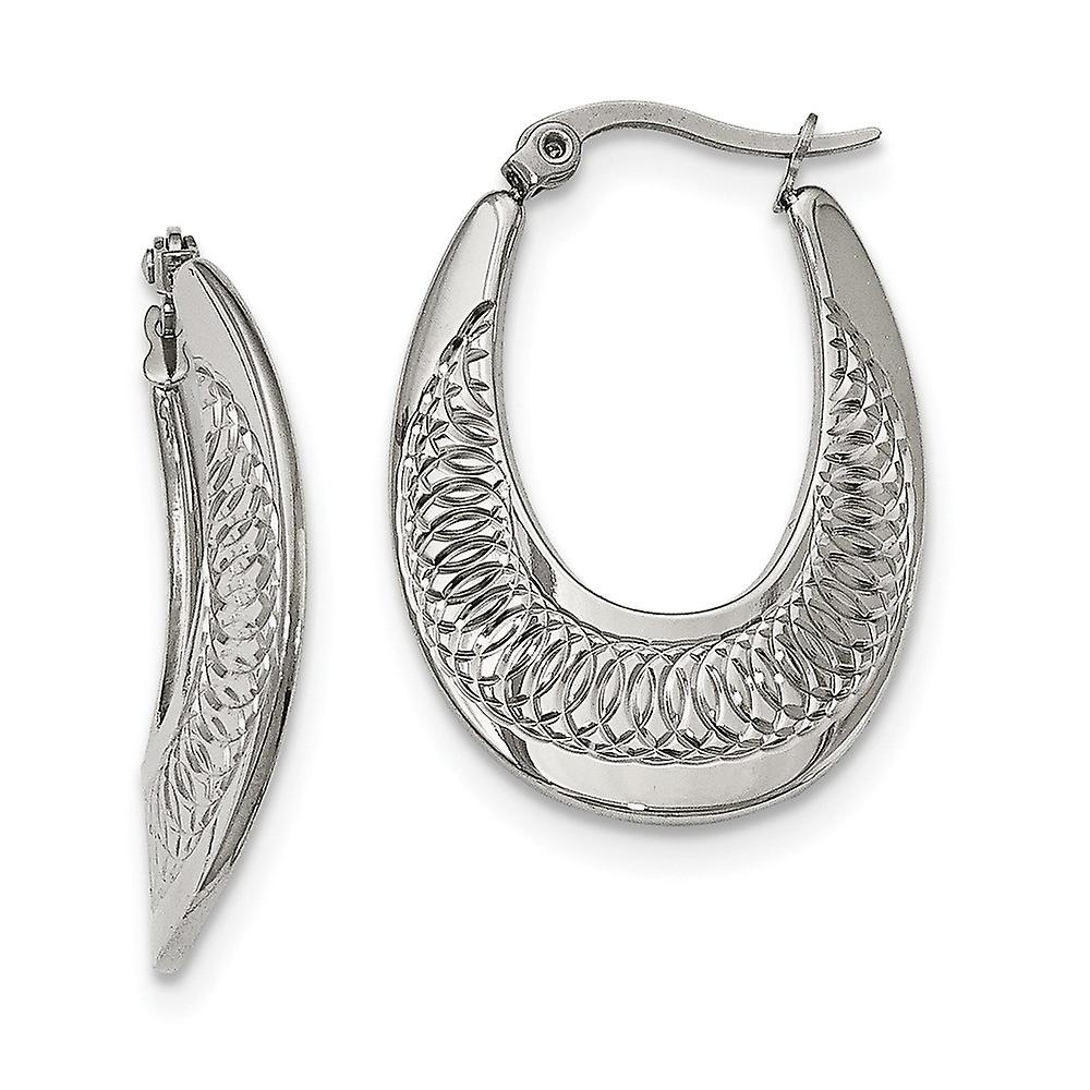 Stainless Steel Polished and Textured Swirl Hoop Earrings 22.5mm Wide-Hoop Earring for Women