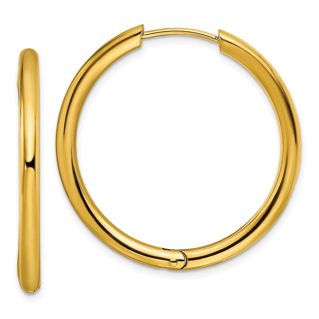 Stainless Steel Polished Yellow Ip Plated 3mm Hinged Hoop Earrings 35x35mm Wide 3mm Thick-Hoop Earring for Women