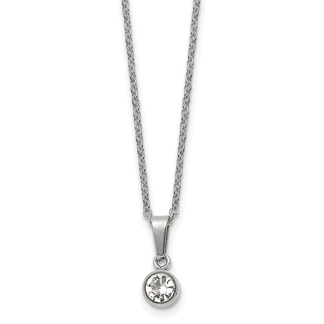 Stainless Steel Polished Crystal Pendant a Cable Chain With A 2 Inch Extension Necklace 6mm Wide 16 Inch Chain-Necklace