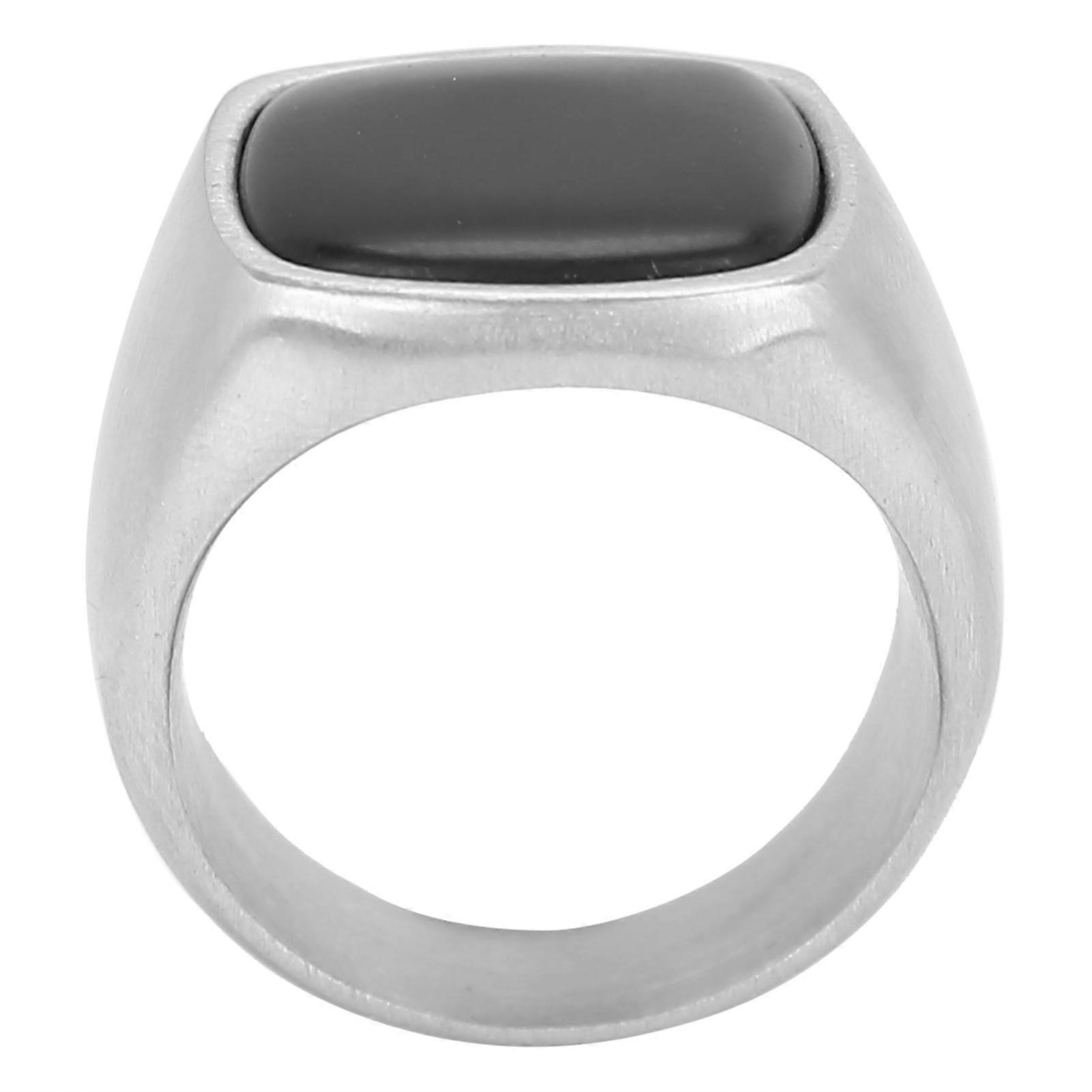 Stainless Steel Ring Classic Steel Color Fashionable Finger Ring Jewelry Accessory for MenBlack Agate