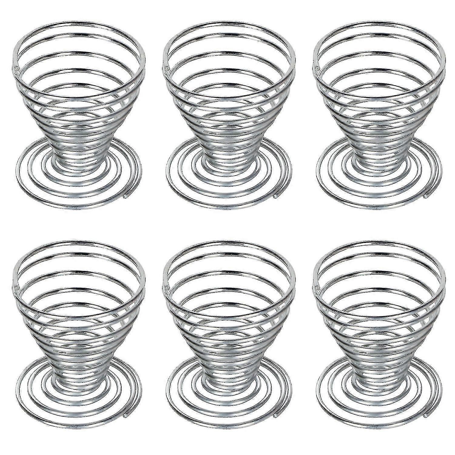 Brushed Coil Spring Egg Cups A set of durable brushed steel egg cups. Made of brushed steel wire coiled into egg cup shape. Features Brushed wire coiled into egg cup shape 6 egg cups per pack Elasticity and shock absorption Holds eggs securely. Quantity shipped: 6 pieces Product color: silver