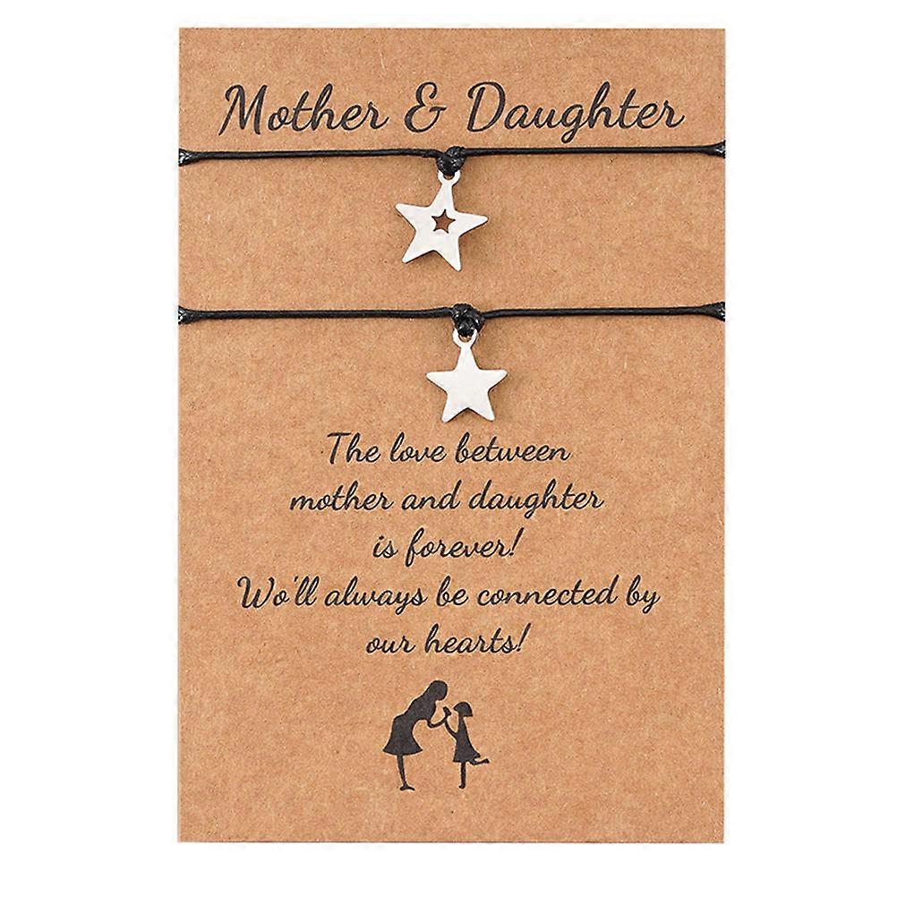 Stainless Steel Hollow Star Mom & Daughter Bracelet Set Braided Wax Chain, Meaningful Gift for Christmas, Birthdays, Mother's Day