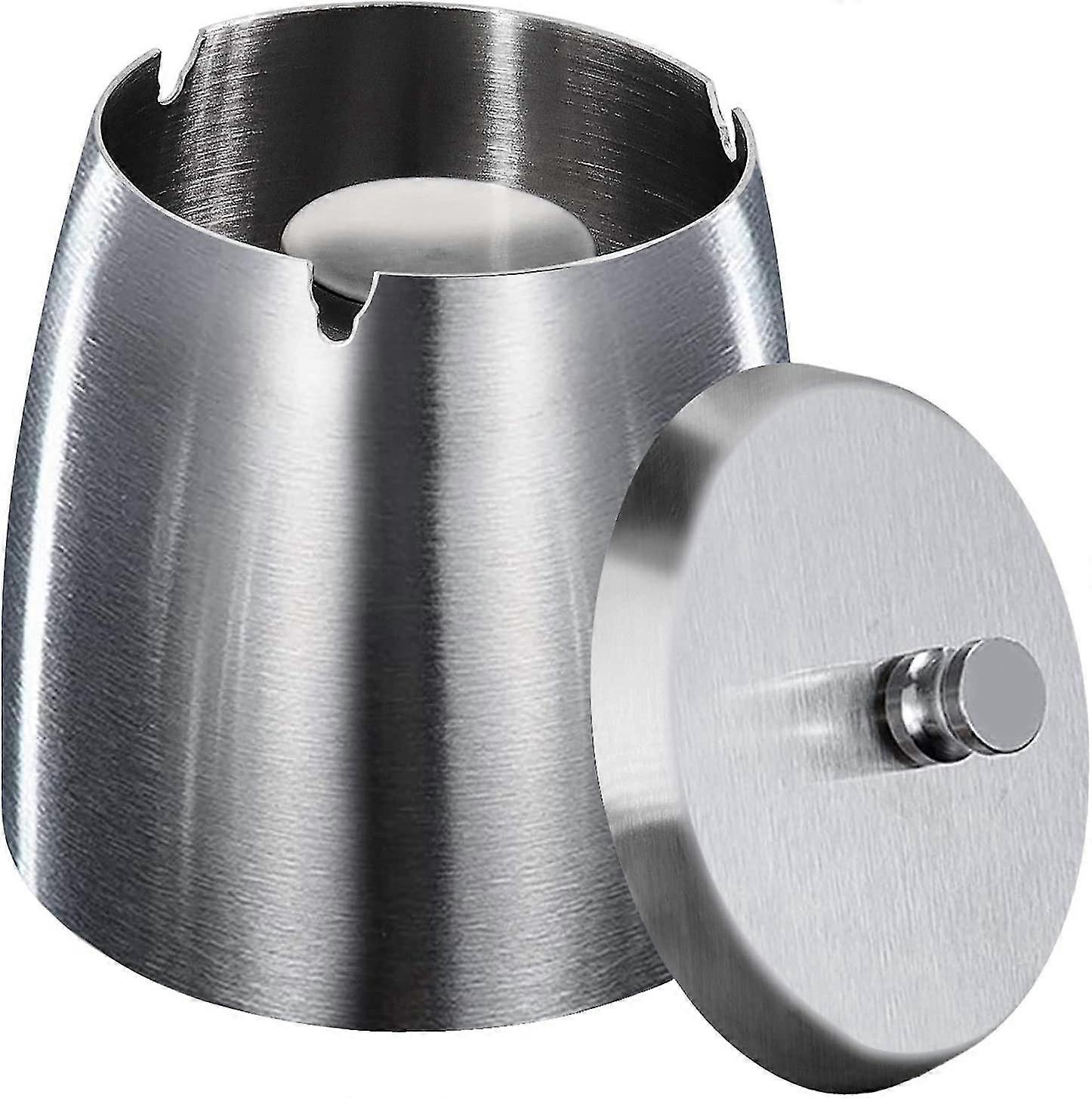Stainless Steel Ashtray With Lid, Windproof Outdoor Ashtrays, Cigarette Ashtray For Indoor Outdoor Patio Office Home Use (large)