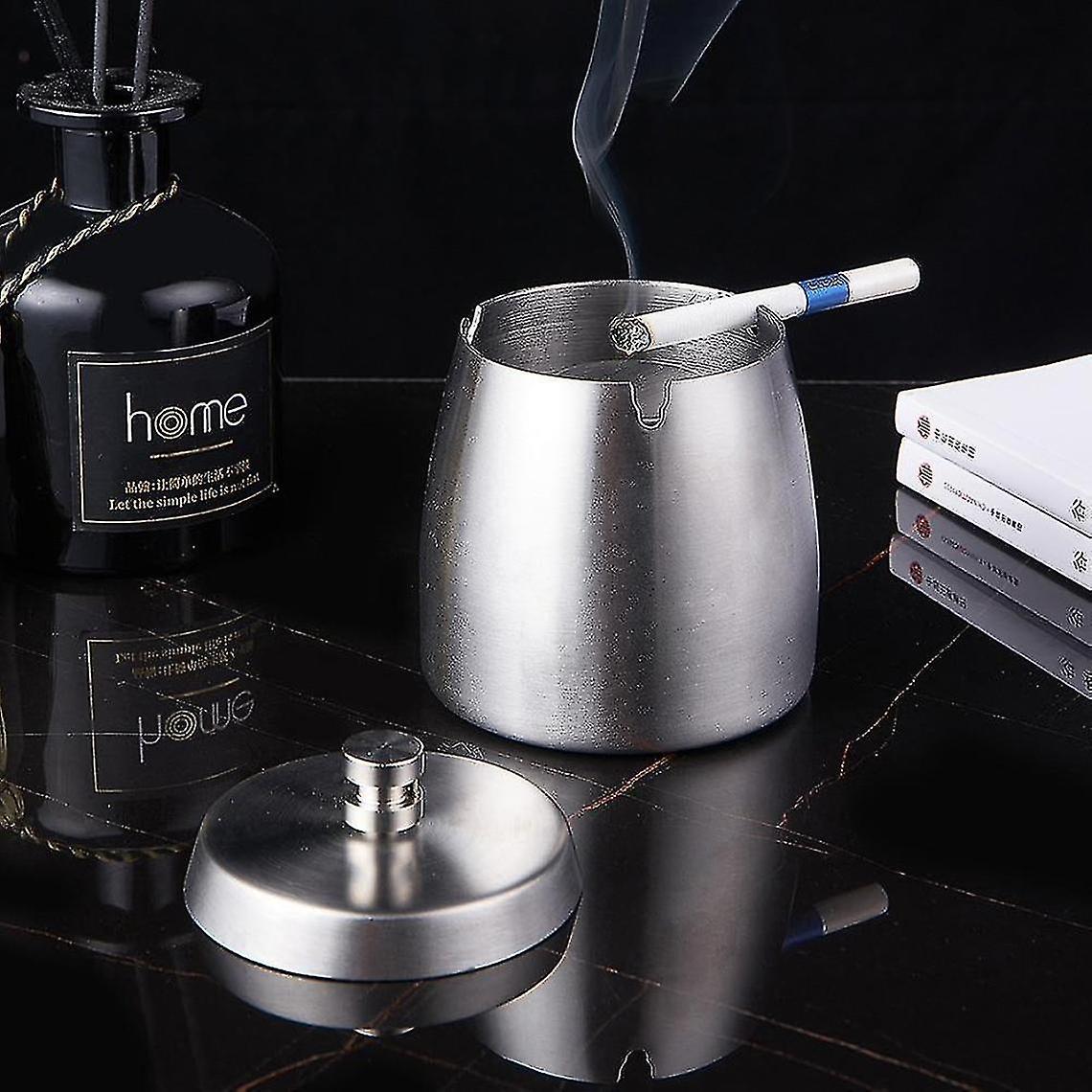 Stainless Steel Ashtray Modern Home Decoration Windproof Outdoor Cigar Ashtray With Lid Tray Gray