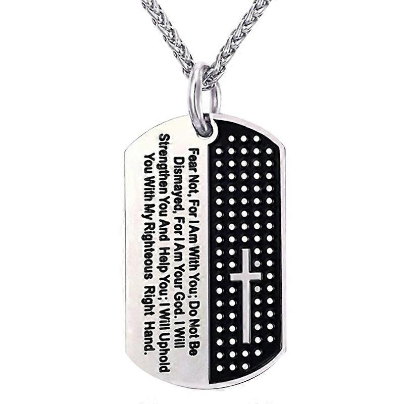 Stainless Steel Dog Tag Cross Bible Verse Pendant Men Necklace Christian Jewelry