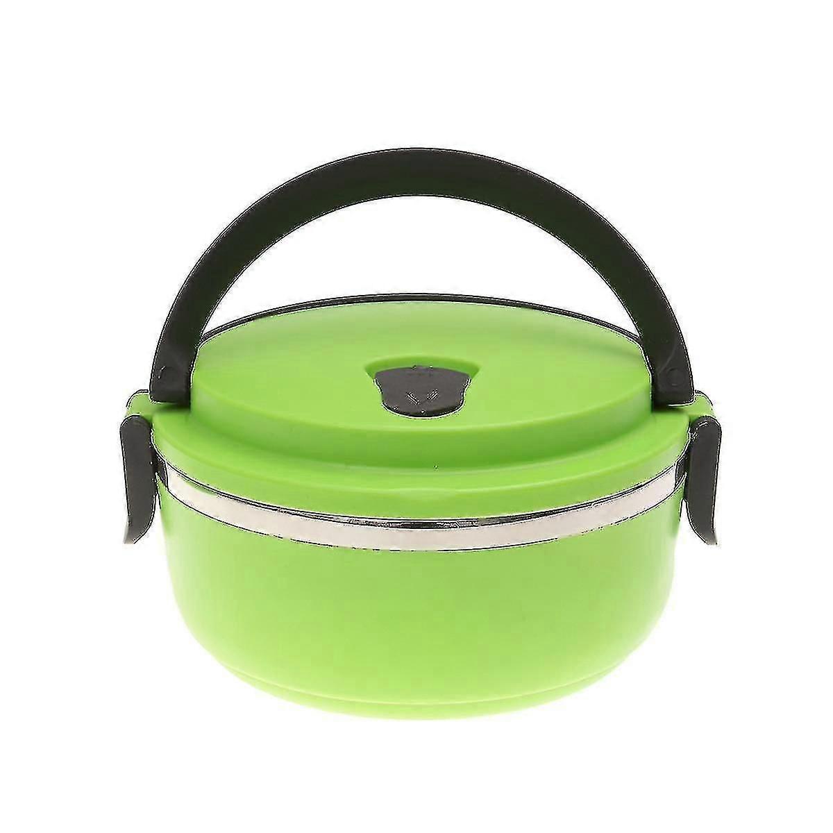 Stainless Steel Thermos Thermal Lunch Box Portable Round Leakproof Food Container Box(green)