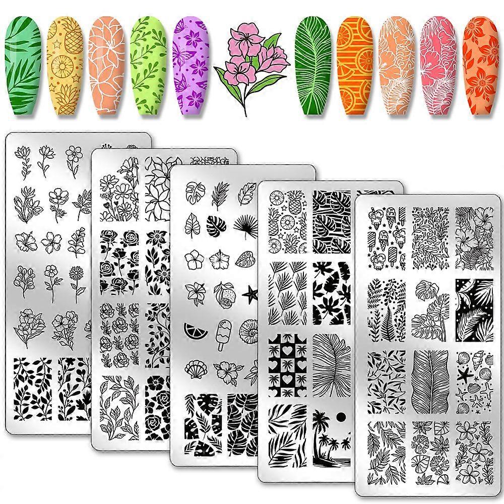 Stainless Steel DIY Nail Art Templates Template Tool Rectangle Plants 12x6cm 5 sheets/set
