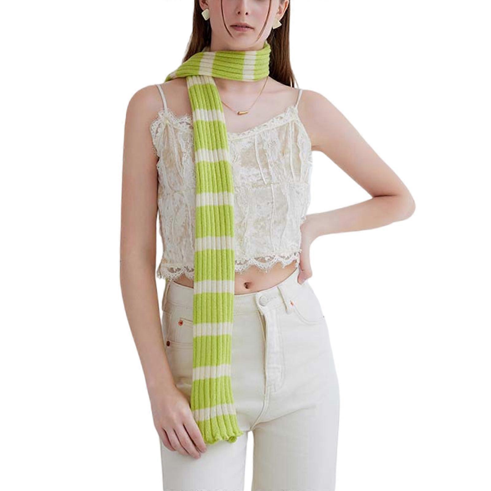 Striped Knitted Scarf Lotuses Pattern Scarf Soft Knitted Scarf Fashionable Scarf Versatiles Unisex Accessory Green