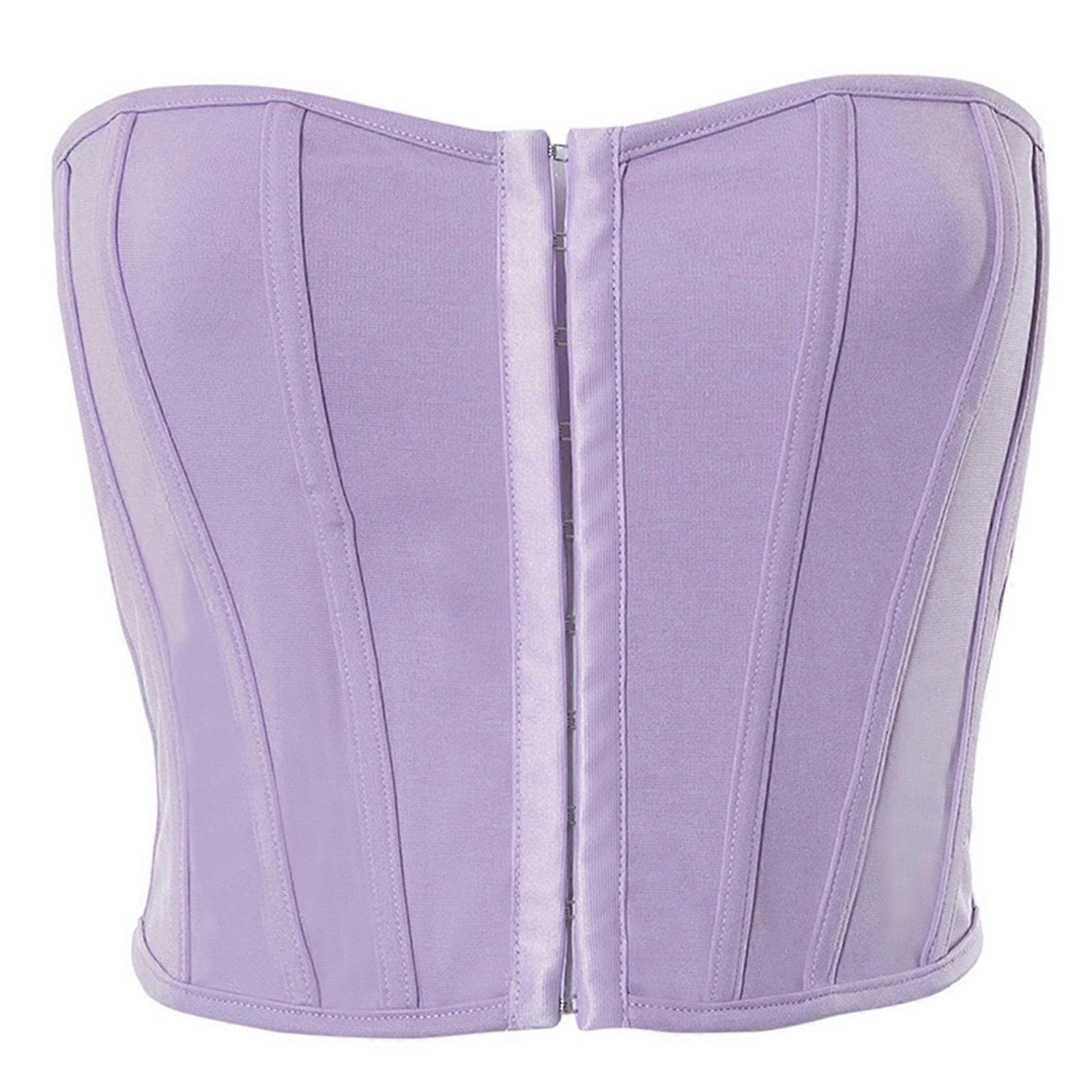 High Street Girl Tube Tops Strapless Backless Sexy Short Vests Fishbones Off Shoulder Bodycon Short Bustier for Summer Purple L