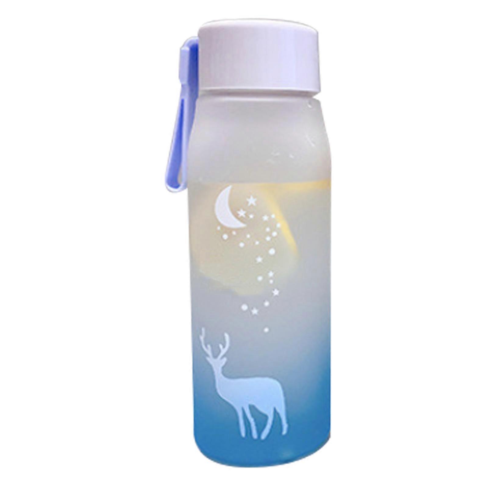 Portable Water Bottle with Lanyard Cute Fashion Print Frosted Clear Travel Water Bottle for Beverages Tea Matte Blue