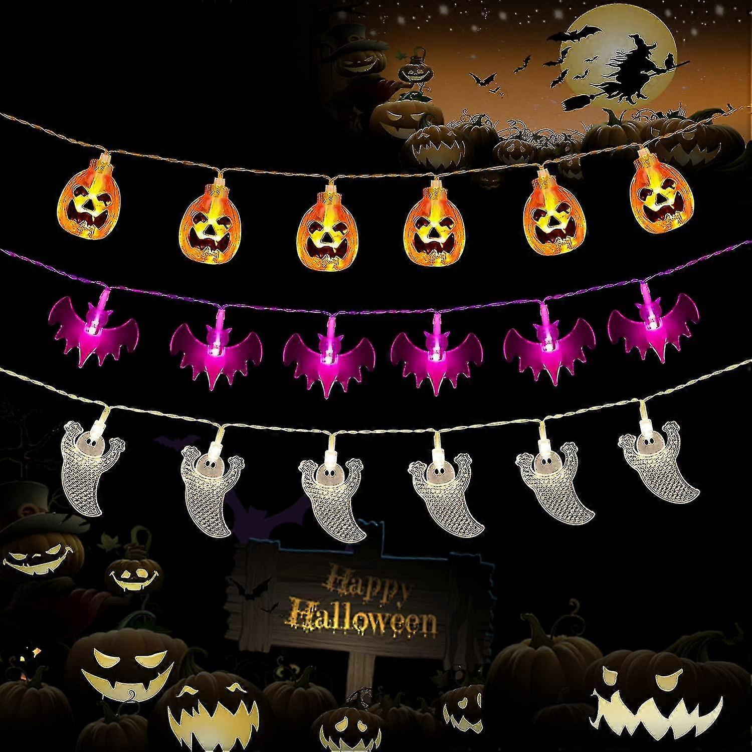 String Lights 9m 60led Pumpkin Bat Ghost Decoration Lights Battery Operated For Party Home Decoration