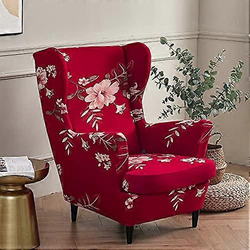 Stretch Wing Chair Slipcover 2 Piece Washable Spandex Armchair Cover for Living Room Bedroom, Fragrant Flower Red
