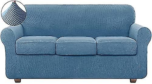 Elasticity Material: This Blue Sofa Stretch Cover Is Made From 90% Polyester And 10% Elastane.And Very Pleasant To The Touch. Our 3-Seater Stretch Sofa Covers Are More Stretchy. Does Not Tear Easily,Durable For Long Term Use.The 3 Seater Sofa Cover With Armrests It Can Be Removed For Cleaning At Any Time.