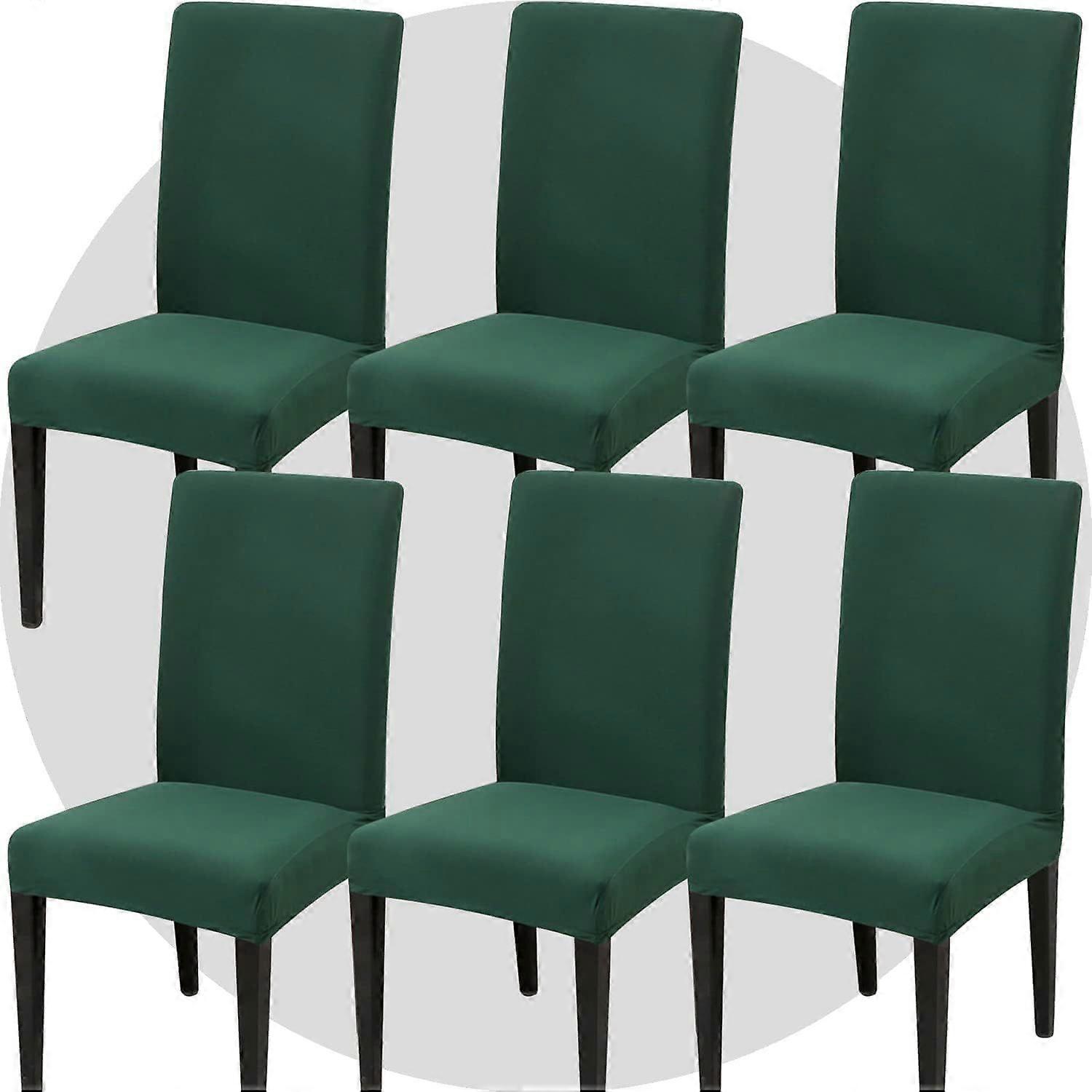 Stretch Chair Covers Slipcovers Set of 6 Dark Green Stretchable Dining Chair