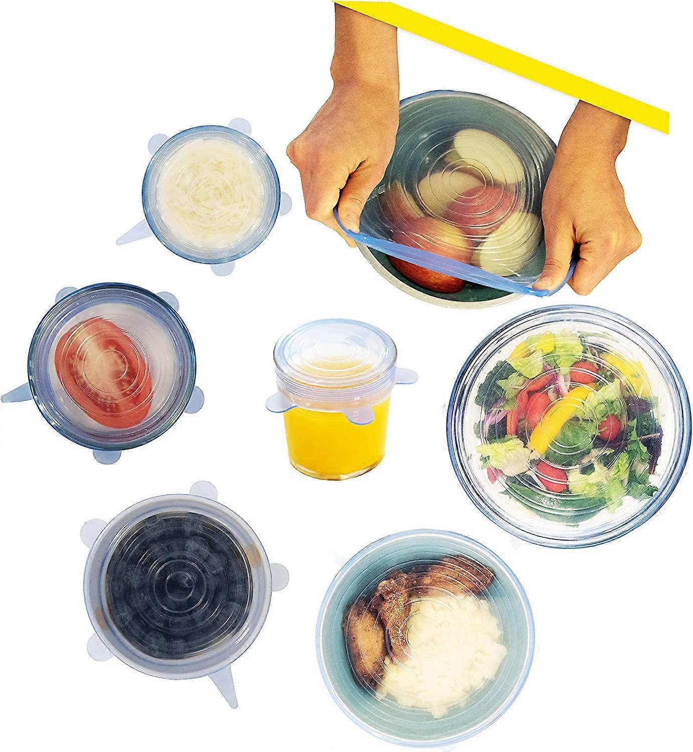 The silicone stretch cover lids will reduce your plastic waste and help you save money, since you will no longer need to buy cellophane to cover your leftover food fresh. Plus, the bowl lid does a much better job at keeping your food fresh!