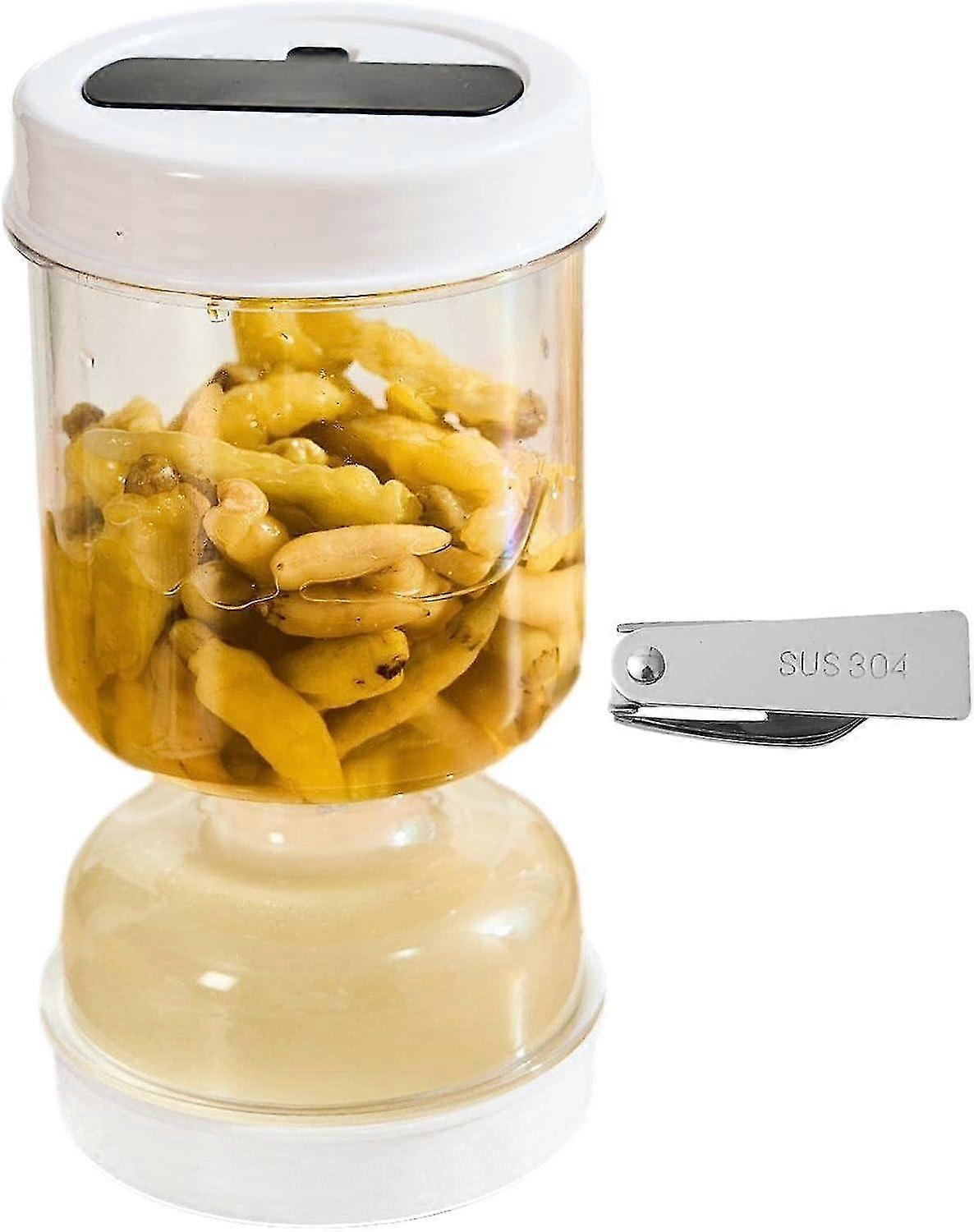 Liquid Food Separated: The advantage of a Pickle Jar is that it is designed to separate liquids from food. The large container at the top is connected to the lower container through a narrow opening,