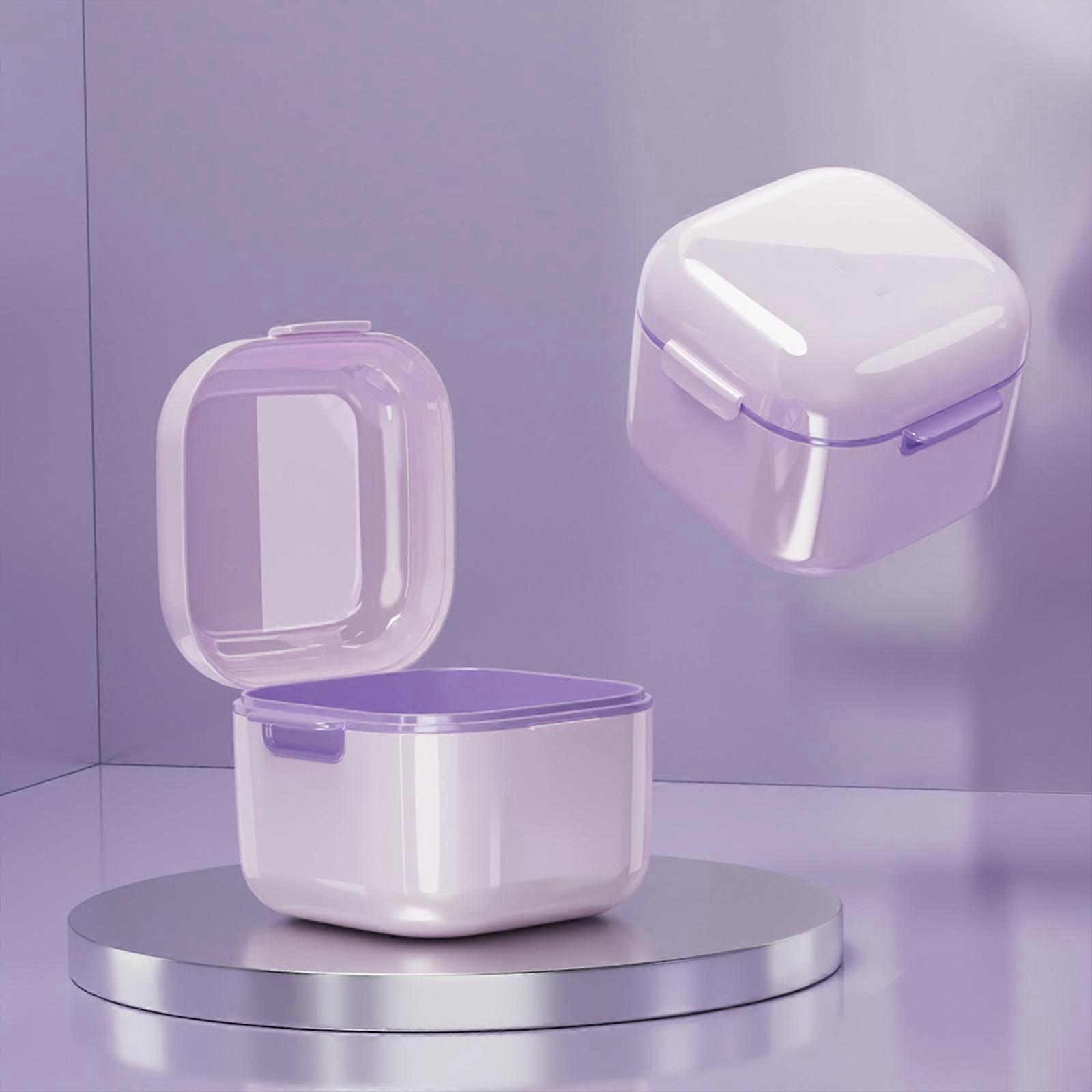 Denture Box with Strainer, Portable False Teeth Container, Hygienic Denture Container for Storage and Dipping Mouth Guard Holders and Dental Gear