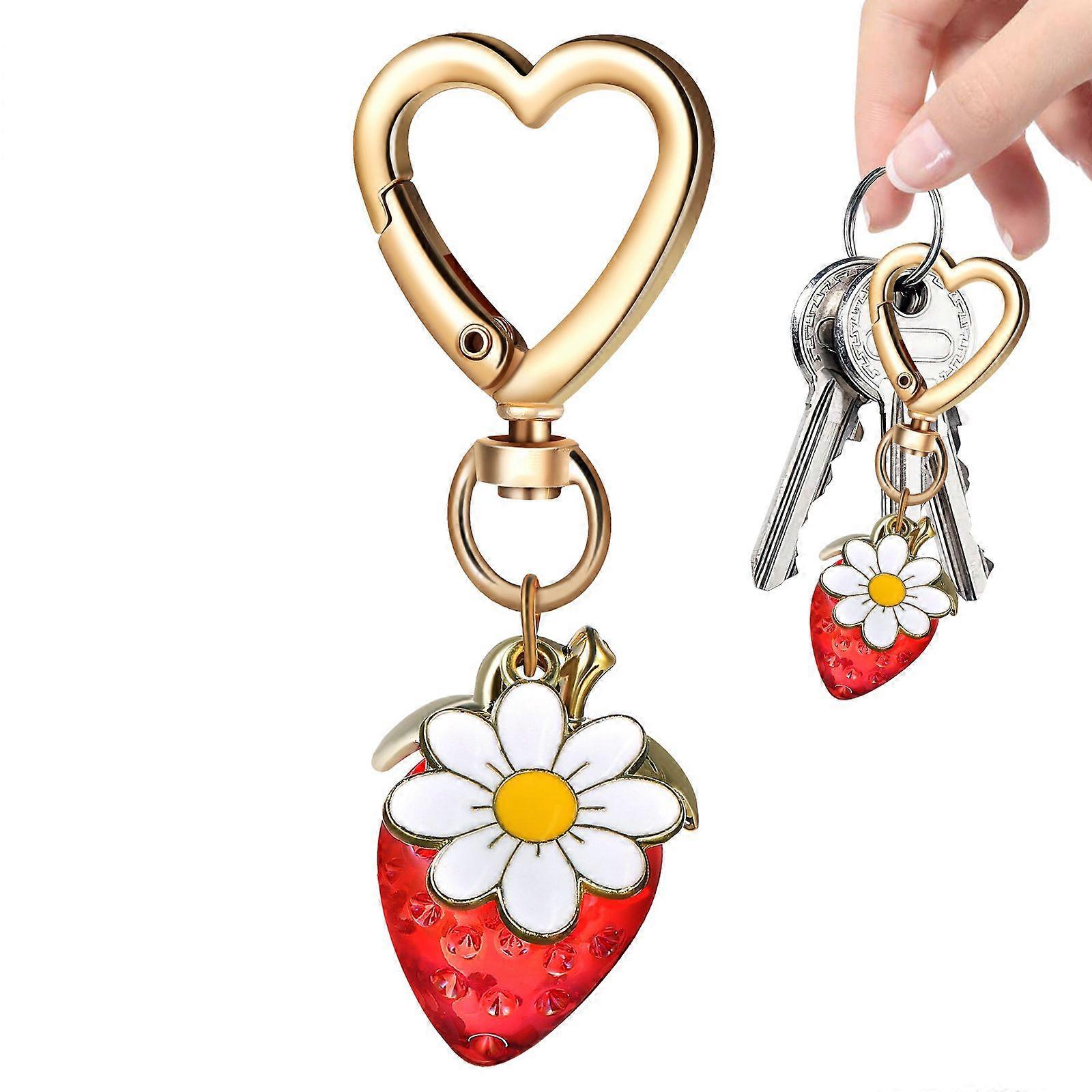 Strawberry Keychain Heart Shaped Key Ring Daisy Keychain Cute Bag Charm Fruit Backpack Pendant Key Decor