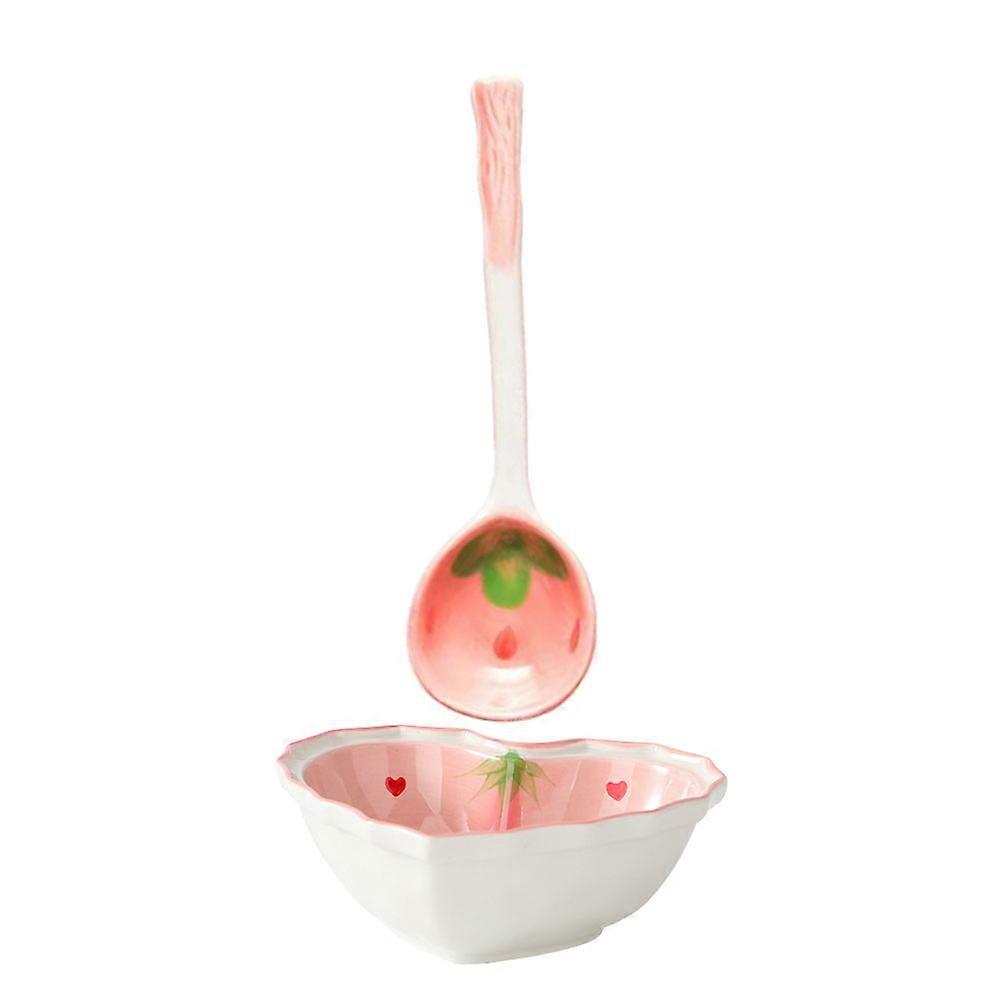 Strawberry Bowl Ceramic Soup Bowl with Spoon for Storage 1Set