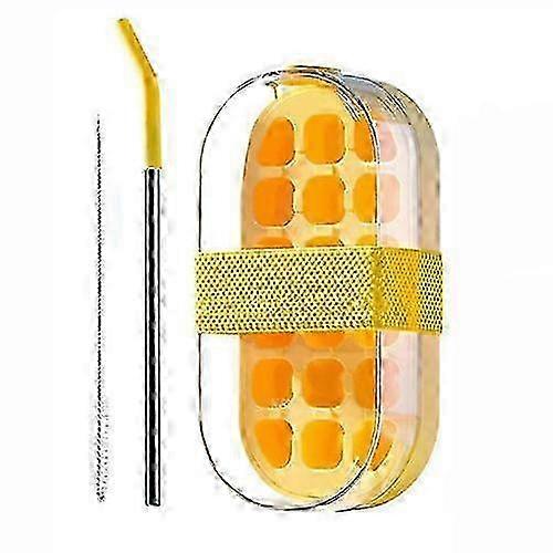 Portable 2 in 1 Ice Cube Bottle with Straw and Cleaning Brush, One-Touch Ice Cube Tray Water Bottle with Lid, 800ml Push-Type Ice Cube Making Bot