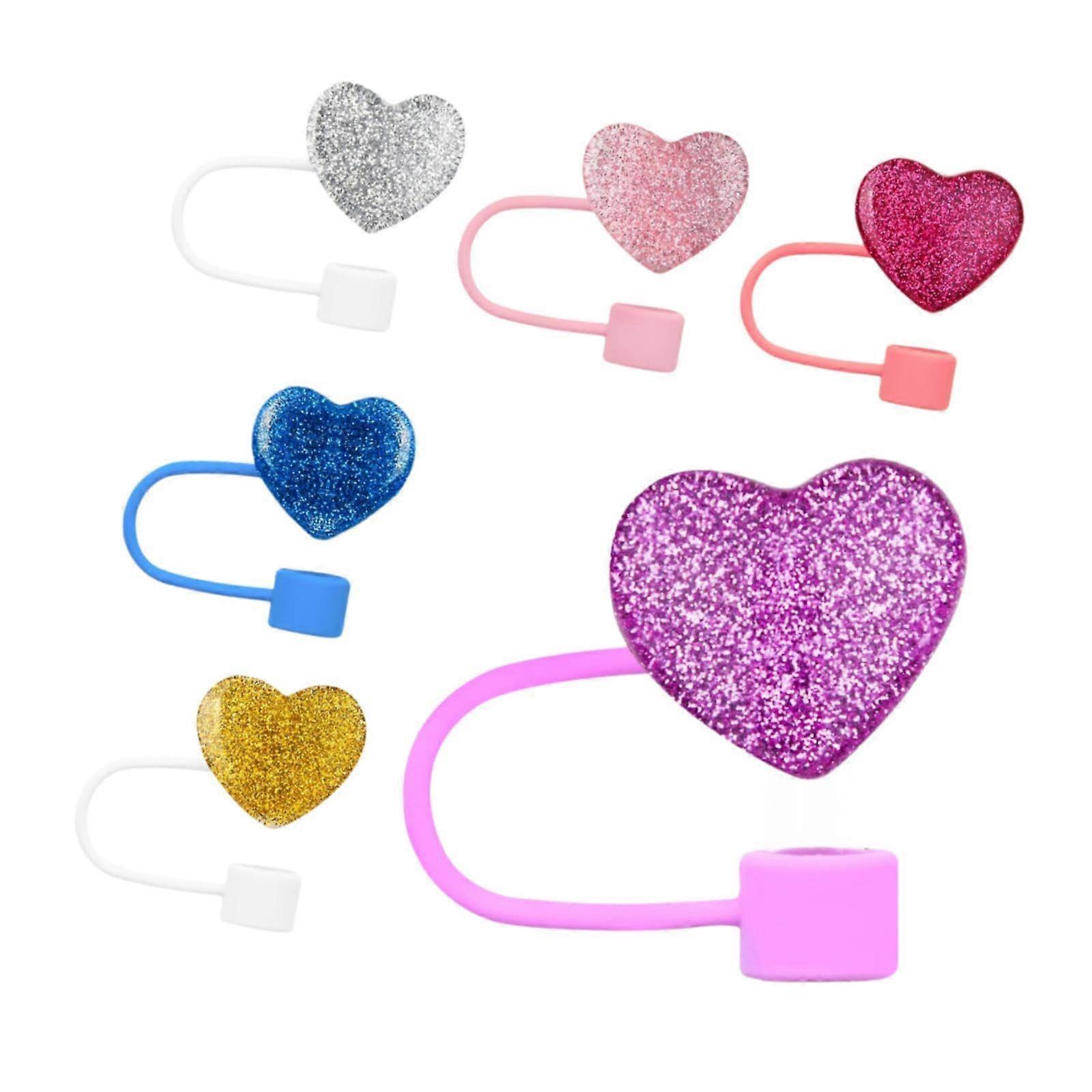 Straw Cover Caps, Straw Topper, Water Cup Straw Covers, Decoration Reusable Drinking Straw Caps, Cup Accessories Heart Shaped, Pack of 6