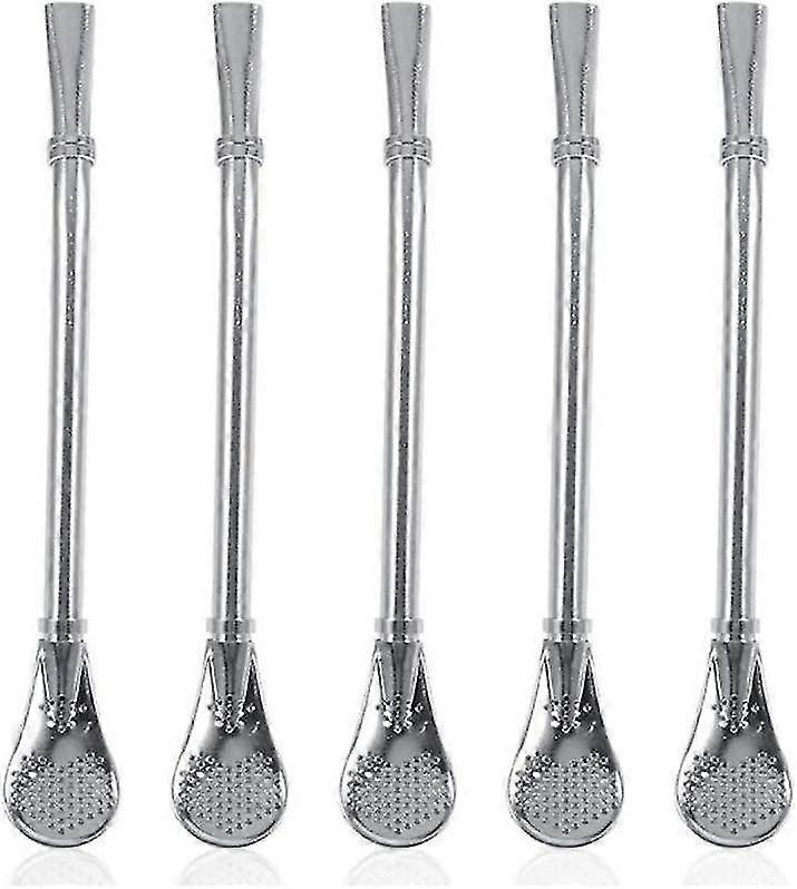 Drinking Straw Stainless Steel Tea Gourd Straws Filtered Spoon(5pcs, Silver) Z
