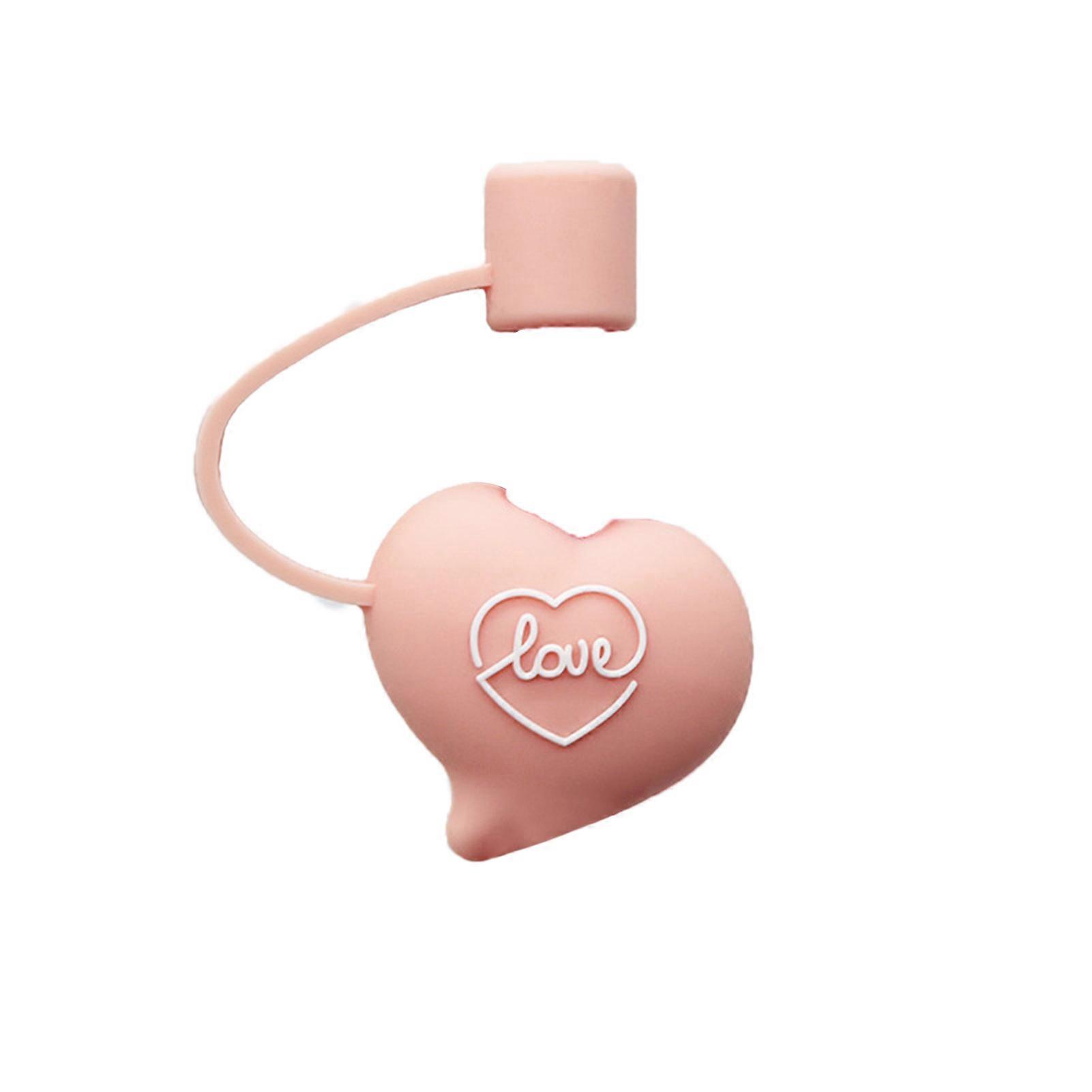 Straw Tips Cover Silicone Pvc Pp Dustproof Reusable Portable Straw Plugs For Kids Families(love [without Straw] )