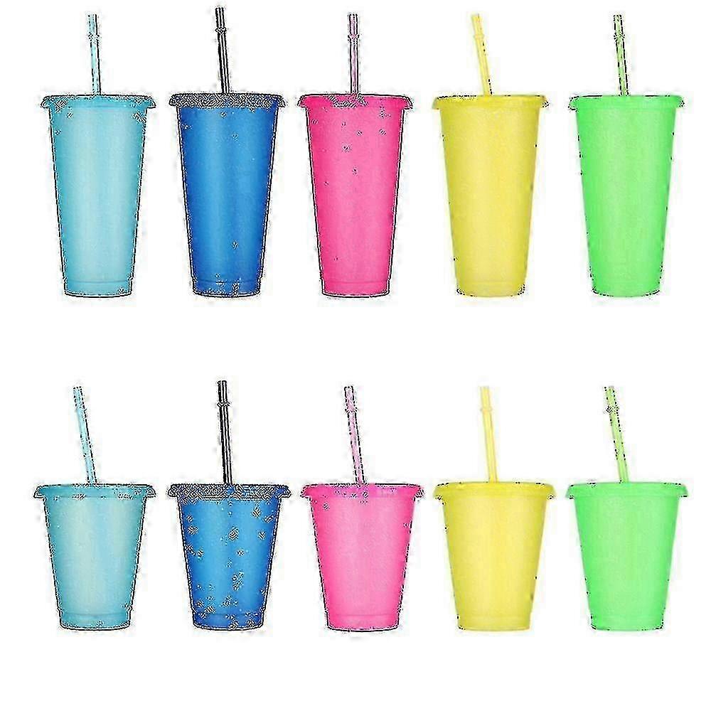 5pcs Reusable Flash Powder Water Cup With Straws Lid 480/700ml Outdoor Straw Cup Water Bottle