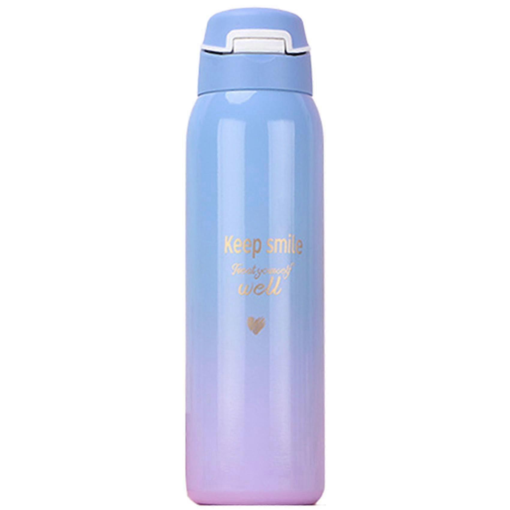 Insulated Stainless Steel Coffee Cup with Straw, Gradient Sports Bottle, Blue