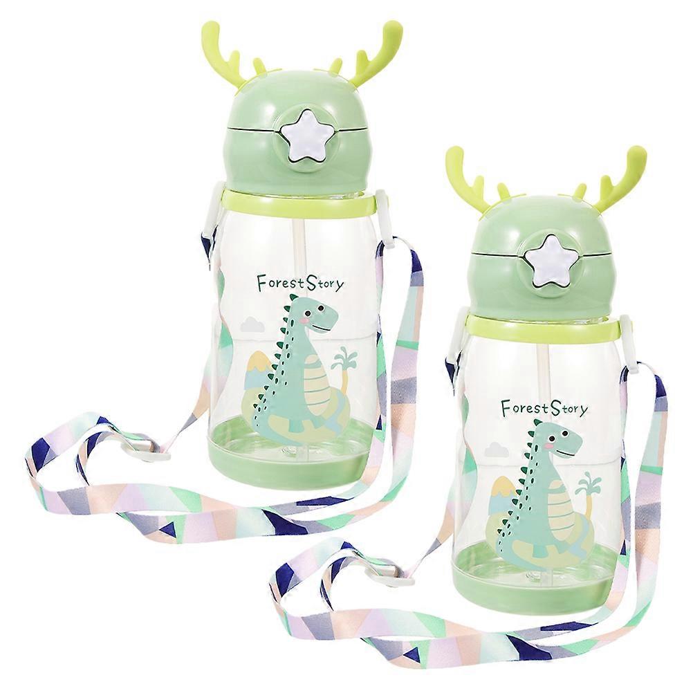 2pcs Lightweight Drinking Cups with Straws Spill Proof Trainer Mugs with Fun Antler Design for Home, School, and Outdoor Use Light Green