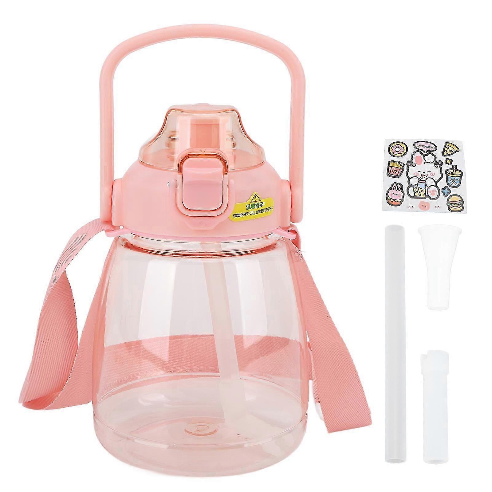 1100ml Water Bottle with Straw Plastic Water Jug with Strap Leakproof Spill Proof Big Belly Water Bottles for Kids Women Pink
