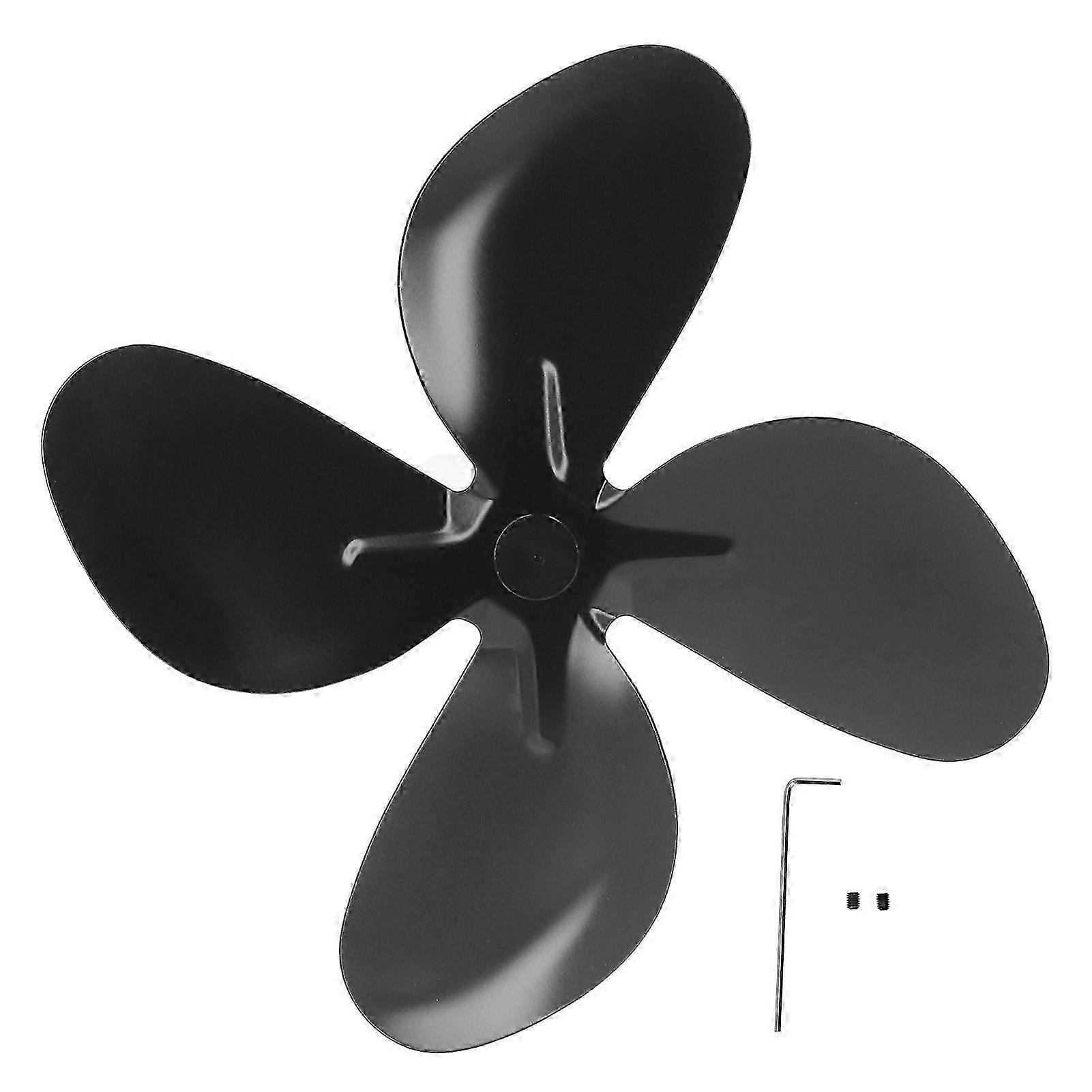 Stove Fan Blade Replacement Aluminum Alloy Fireplace Fan 4 Blades with Hex Wrench Screw Black