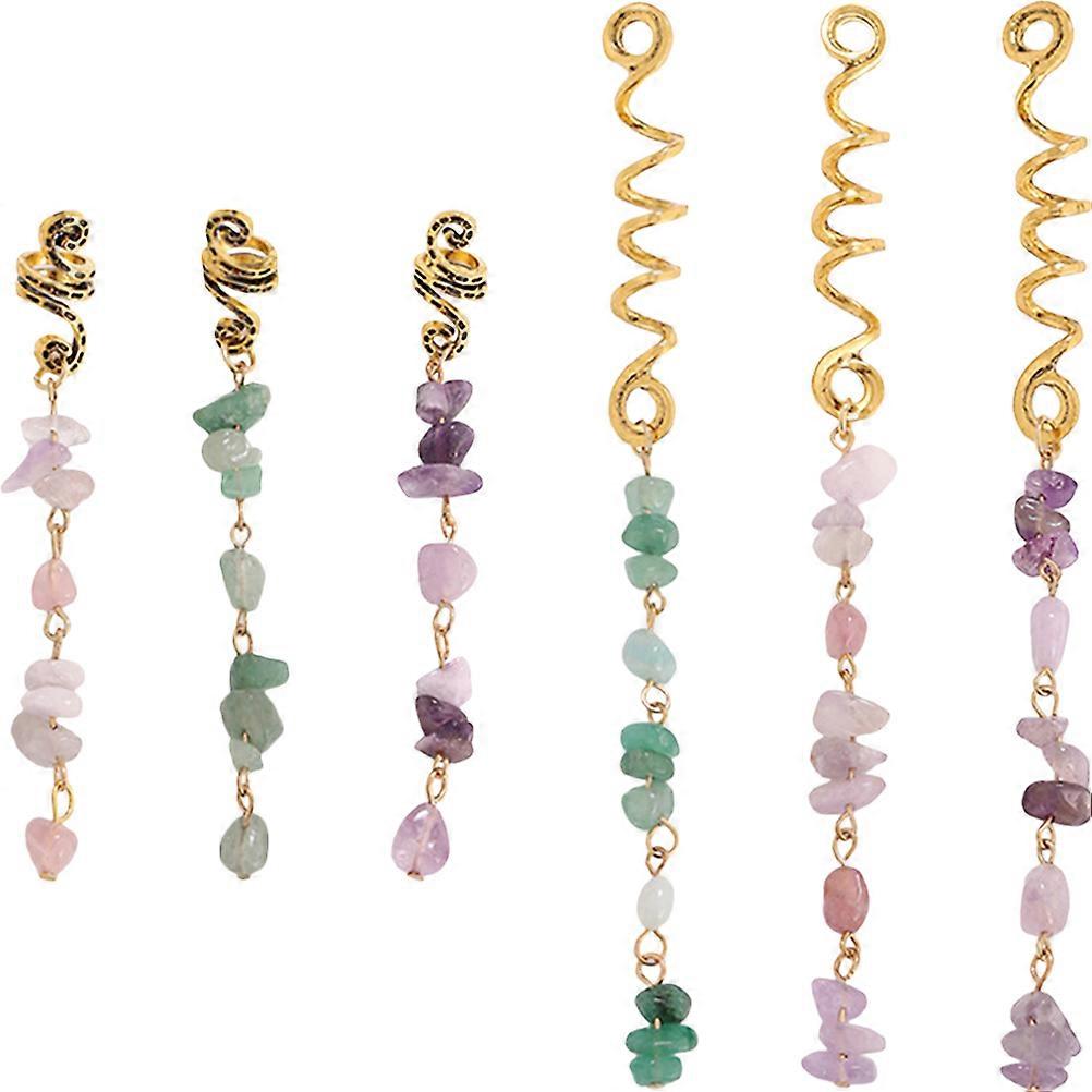 Stone Pendant Hair Accessories Natural Dreadlock Jewelry for Braids 6Pcs Set