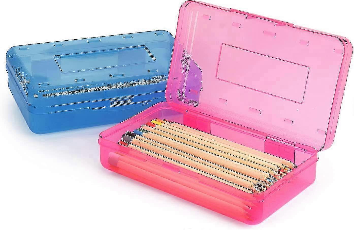 Large Capacity Clear Pencil Boxes with Snap-tight Lid, Stackable Plastic Design