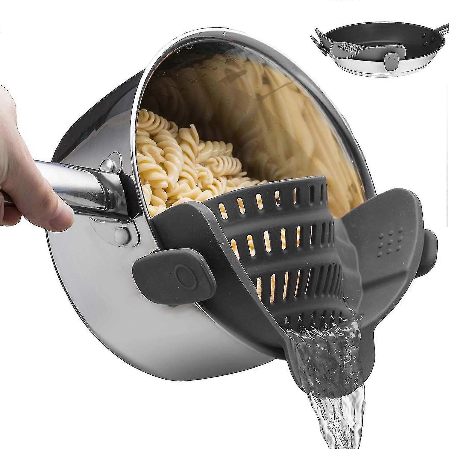 Snap N Strain Strainer, Clip On Silicone Colander, Fits All Pots And Bowls - Grey
