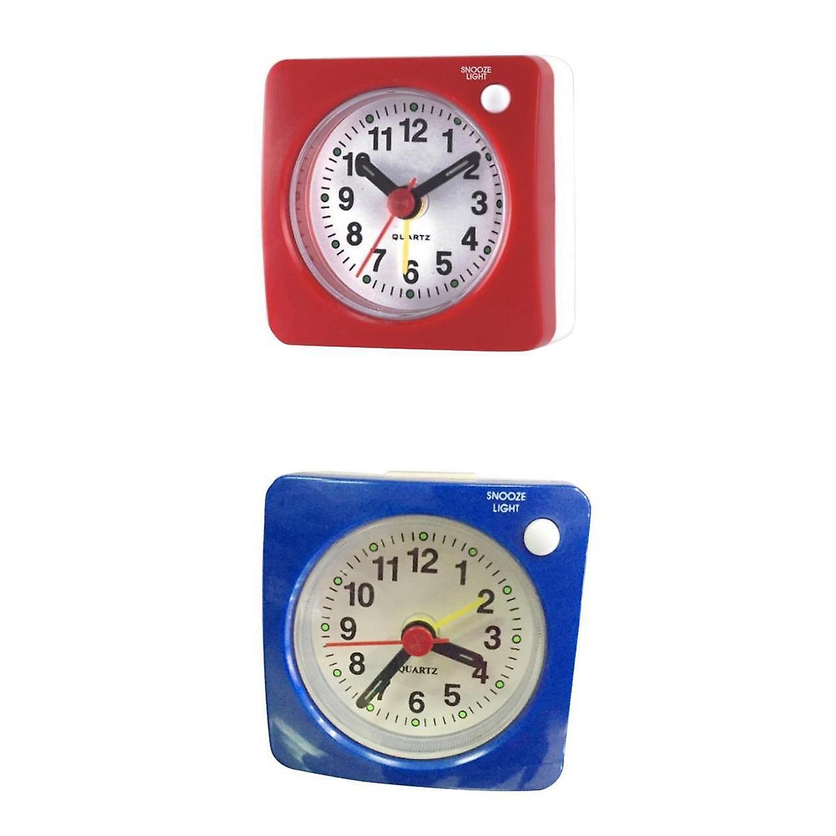 Ascending Sound Small Travel Alarm Clock with Snooze Nap and Light Blue+Red
