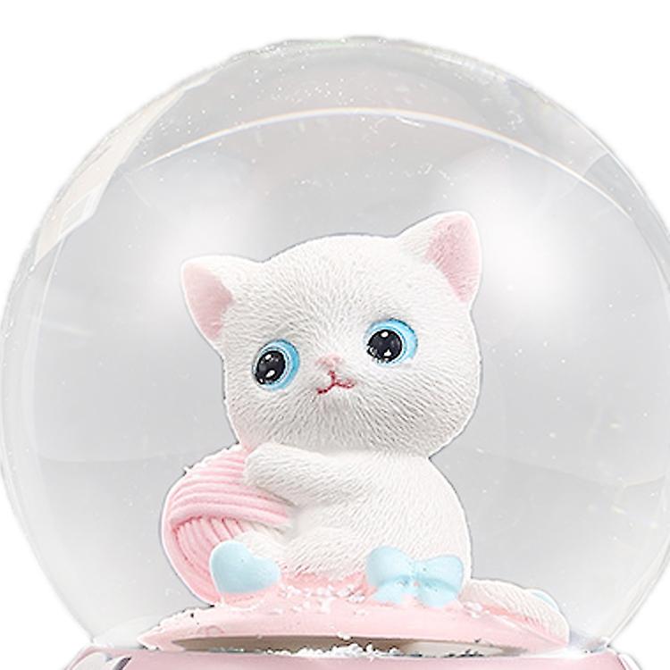 Snow Globe Resin Cat Crystal Snowball Home Ornament Decoration with Battery Operated Glittering Light and Music White Cat