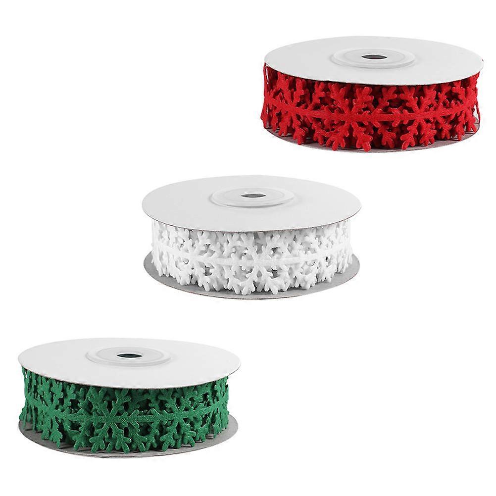 3 Rolls Christmas Ribbon Set with Snowflake Design – Red, Green & White Decorative Wrapping for Tree, Party & Holiday Decorations