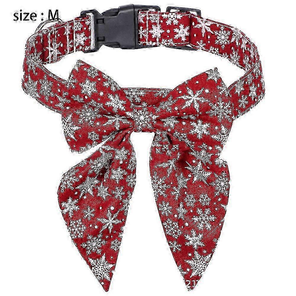 Holiday Dog Collar With Snowflake Pattern Bow, Adjustable Christmas Dog Collar With Safety Buckle M-Big Bow